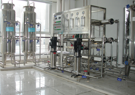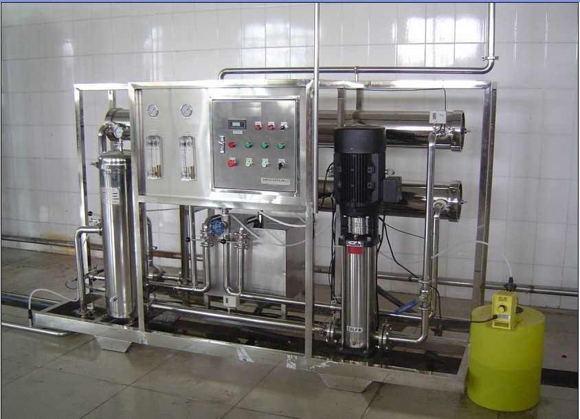 原水箱-增压泵-石英砂过滤器-活性炭过滤器-软水器-一级RO反渗透主机-纯水箱-用水点。