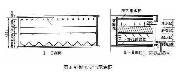 斜管斜板式沉淀池的结构与一般沉淀池相同,是由进口、沉淀区、出口与集泥区四个部分组成,只是在沉淀区设置有许多斜管或斜板。图1为斜管式沉淀池的典型结构。