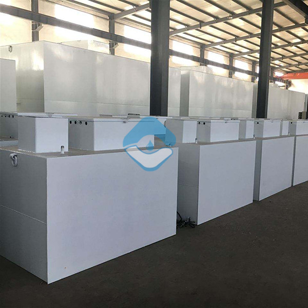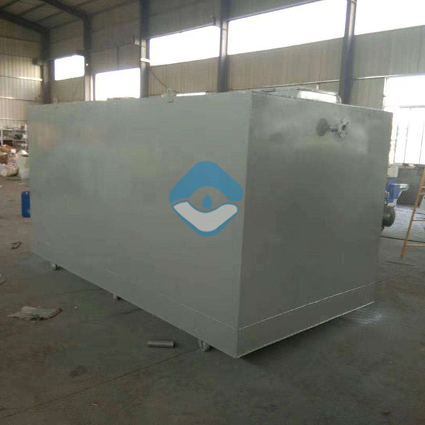 小区污水处理设备规格从每小时0.5m³至30 m³等,箱体采用碳钢板制做,内、外采用环氧沥青防腐,使用寿命一般可达15年以上。